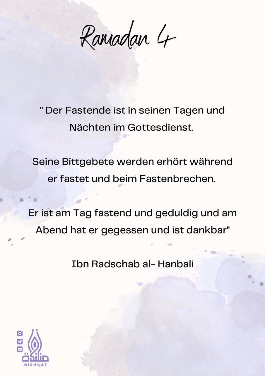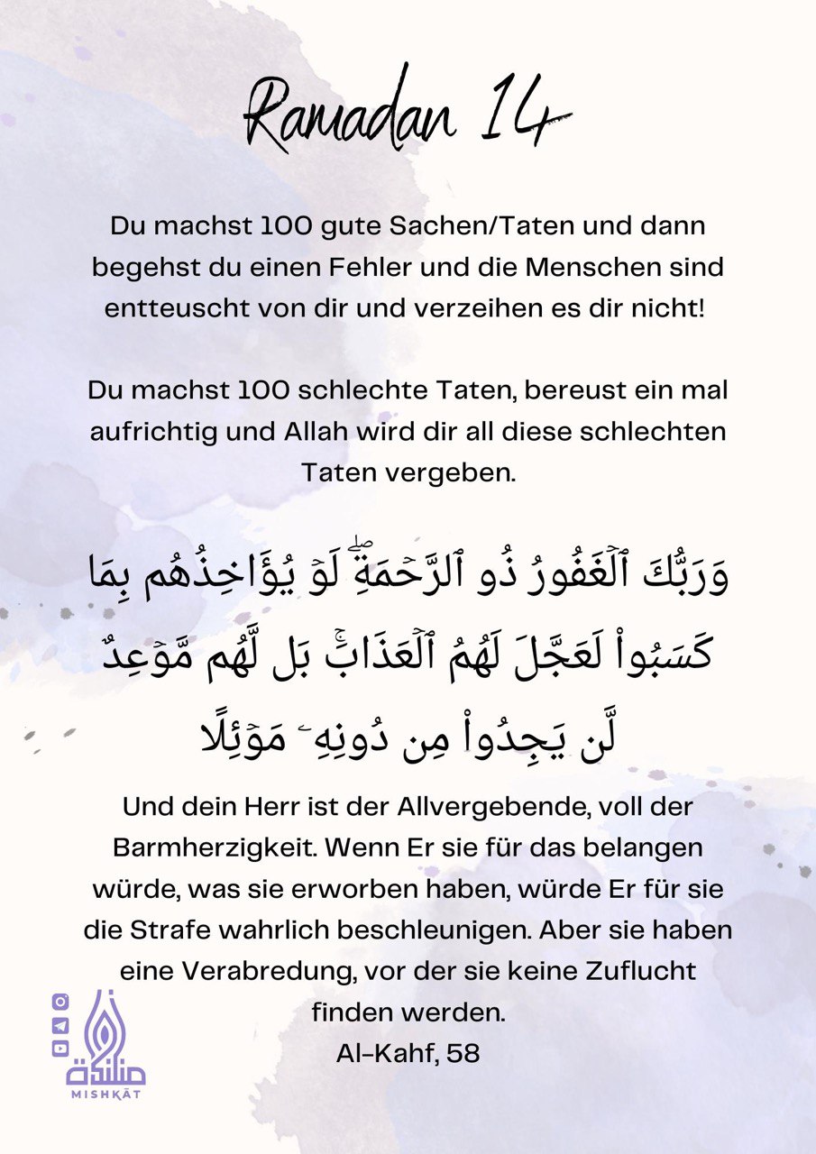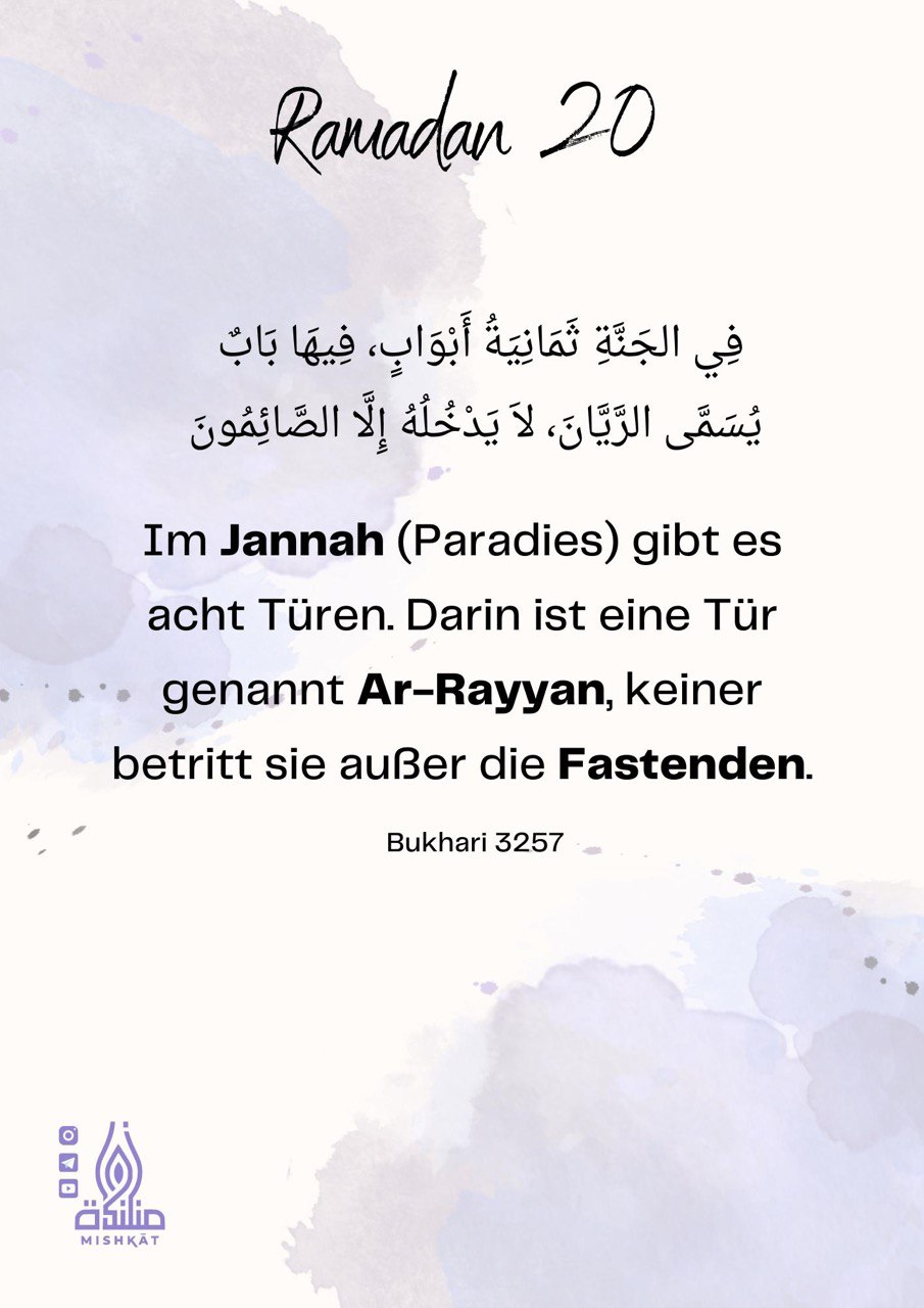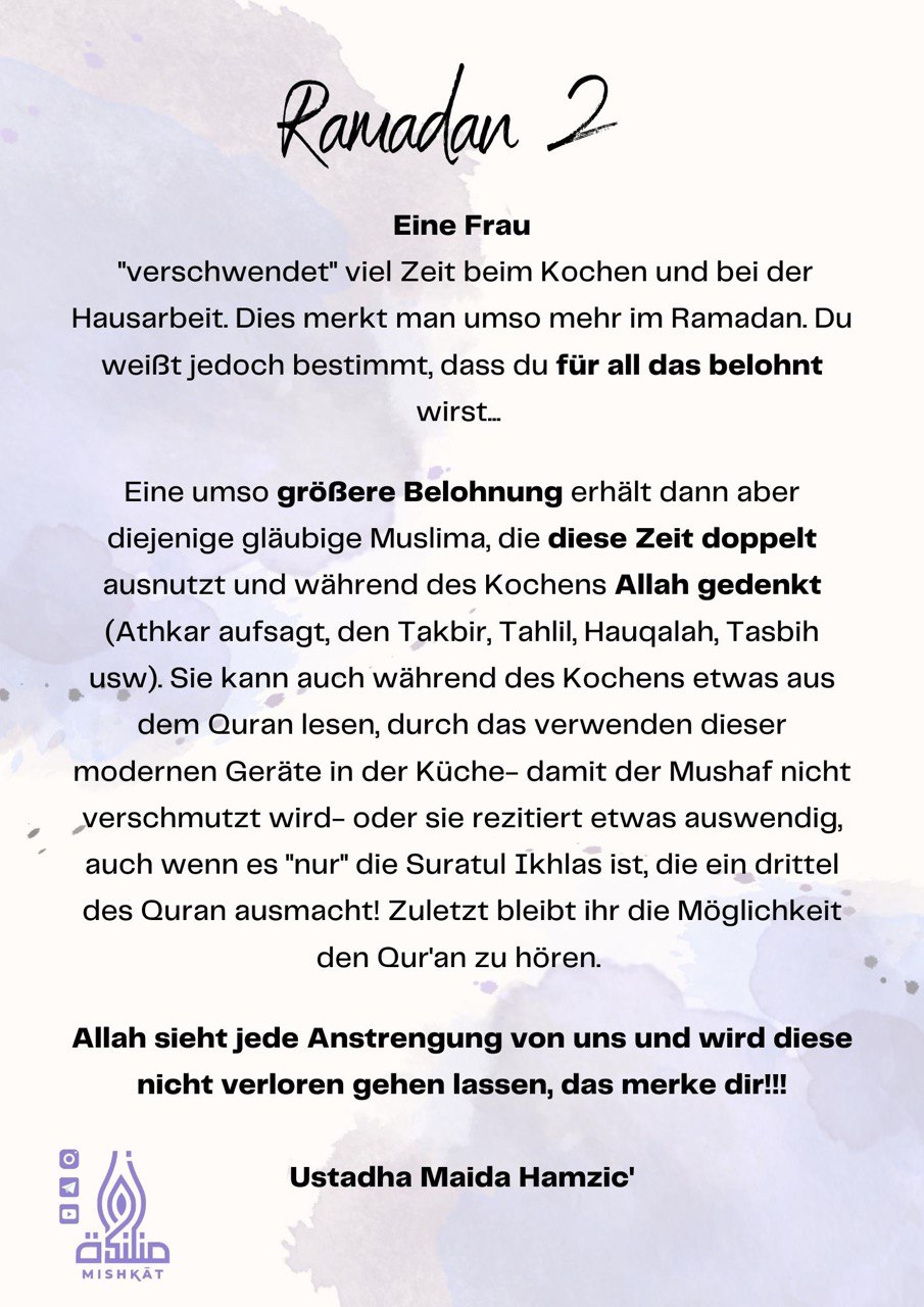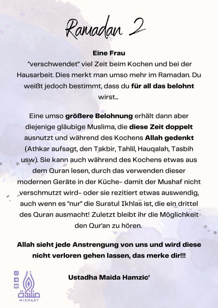 Diese Galerie enthält tägliche Erinnerungen für den Ramadan – Auszüge aus dem Qur’an und der Sunnah, praktische Tipps und inspirierende Gedanken für jeden Tag des Monats. Neben den täglichen Erinnerungen findest du hier weitere Informationen.