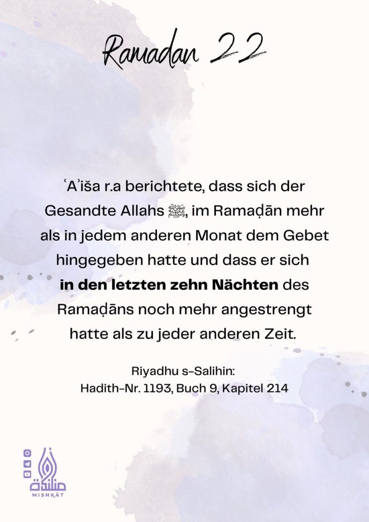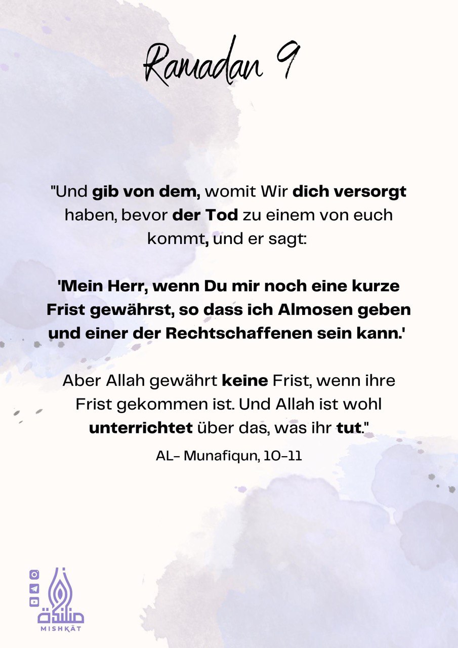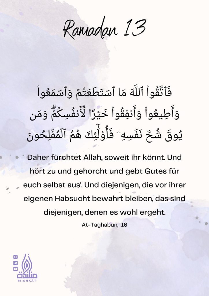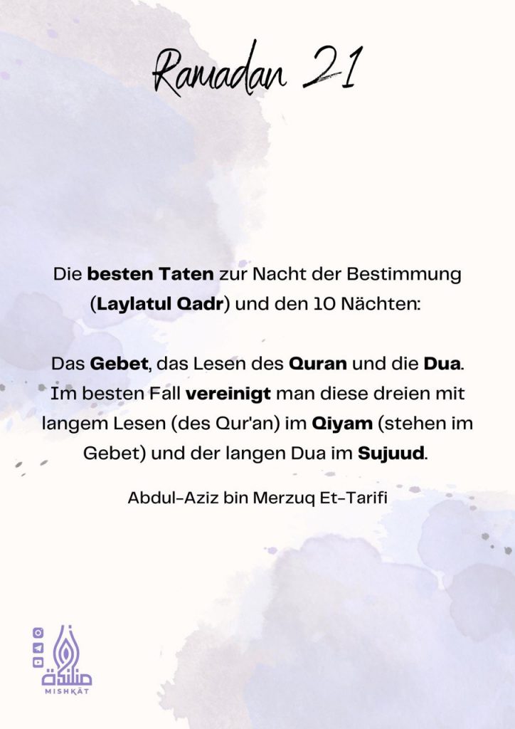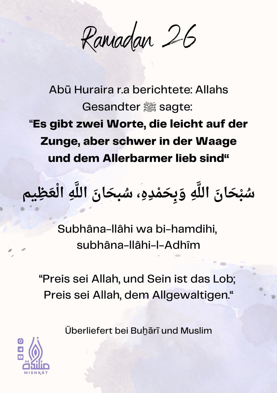 Diese Galerie enthält tägliche Erinnerungen für den Ramadan – Auszüge aus dem Qur’an und der Sunnah, praktische Tipps und inspirierende Gedanken für jeden Tag des Monats. Neben den täglichen Erinnerungen findest du hier weitere Informationen.
