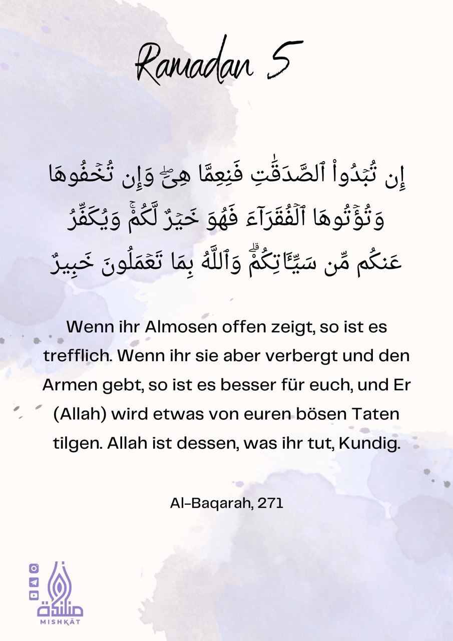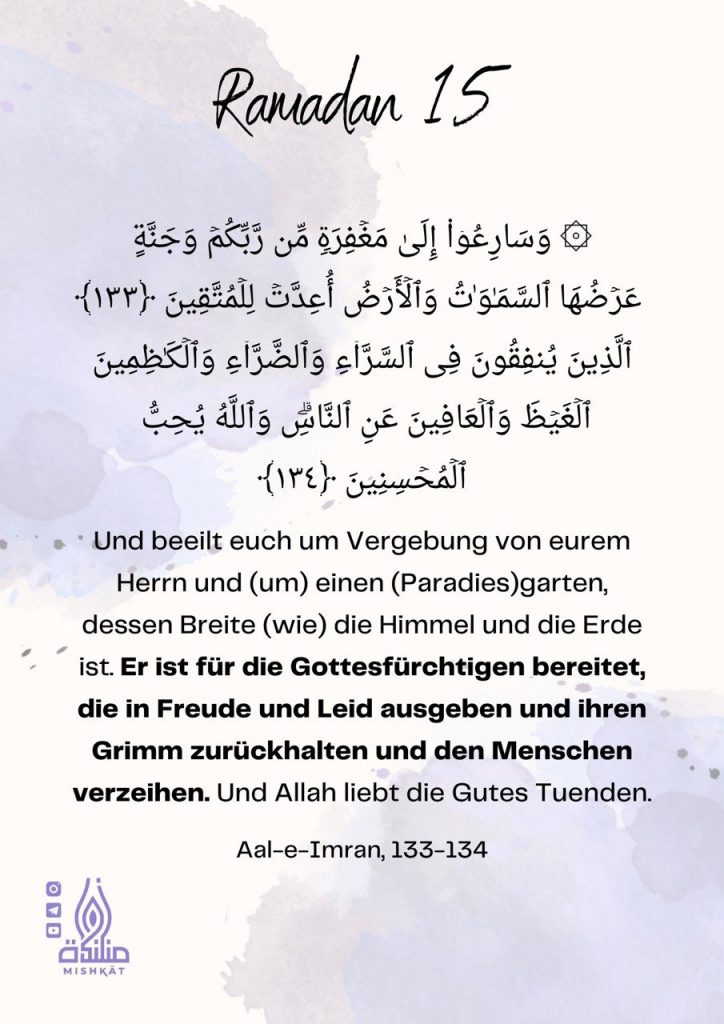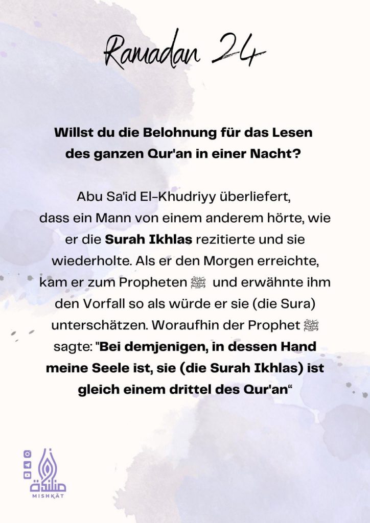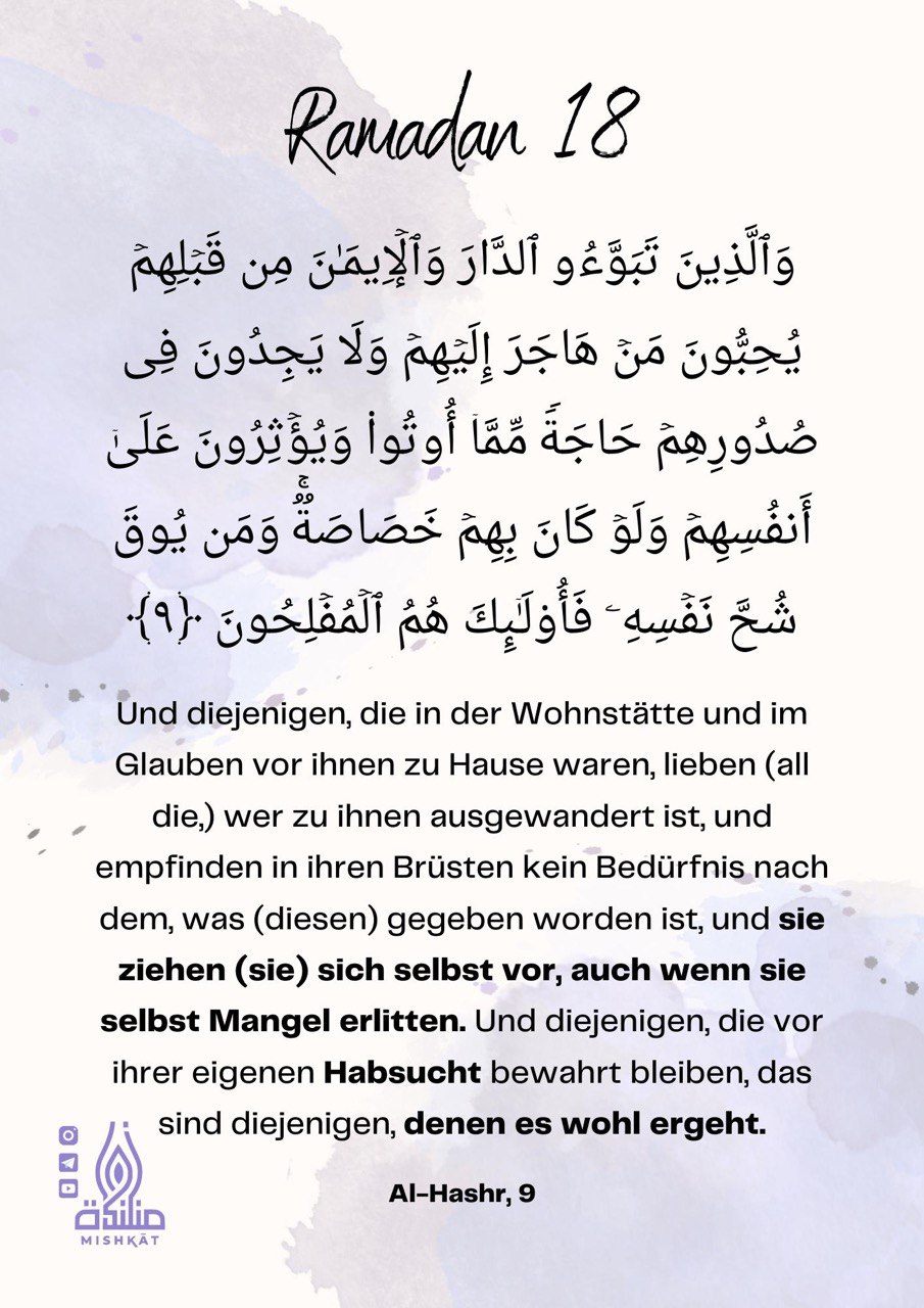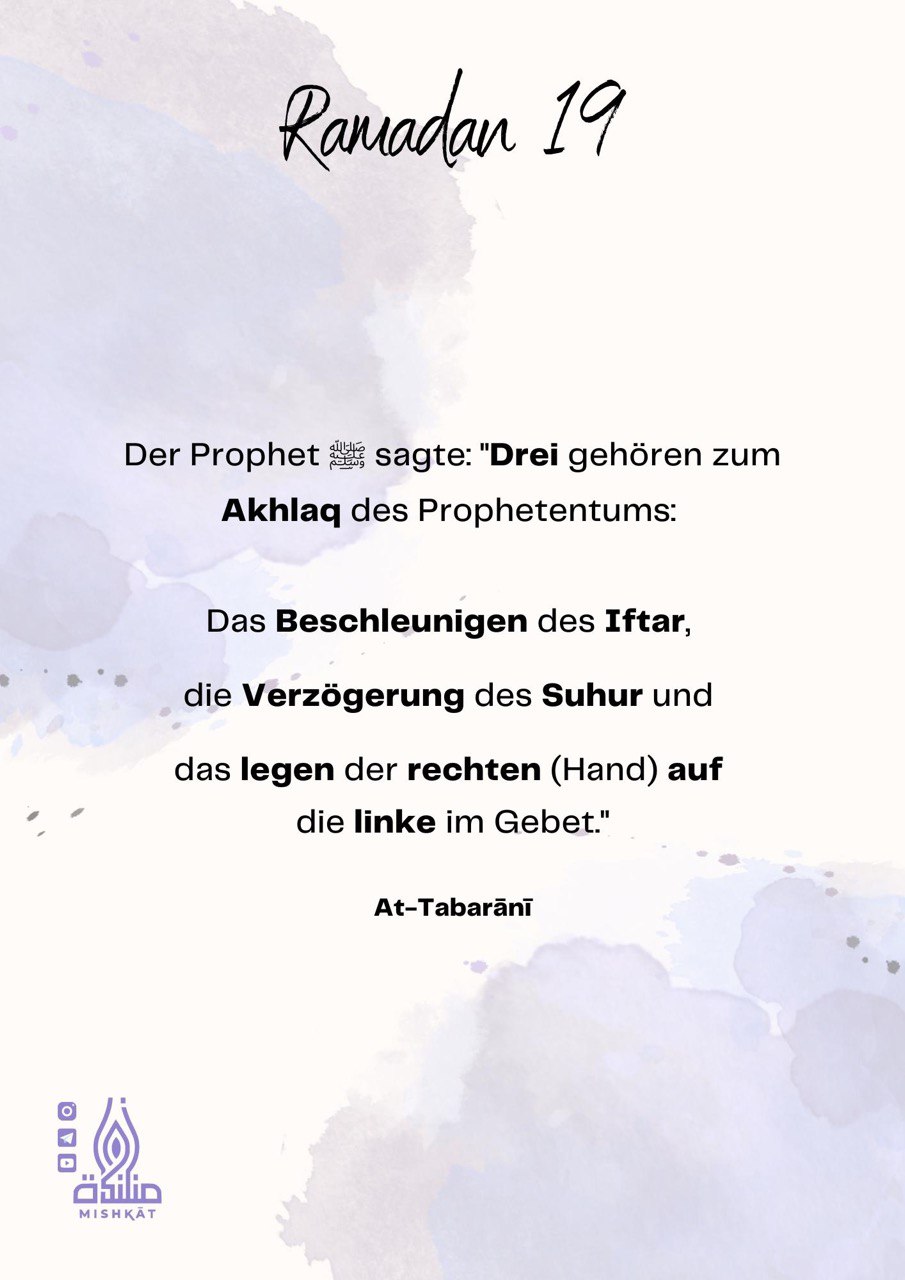 Diese Galerie enthält tägliche Erinnerungen für den Ramadan – Auszüge aus dem Qur’an und der Sunnah, praktische Tipps und inspirierende Gedanken für jeden Tag des Monats. Neben den täglichen Erinnerungen findest du hier weitere Informationen.
